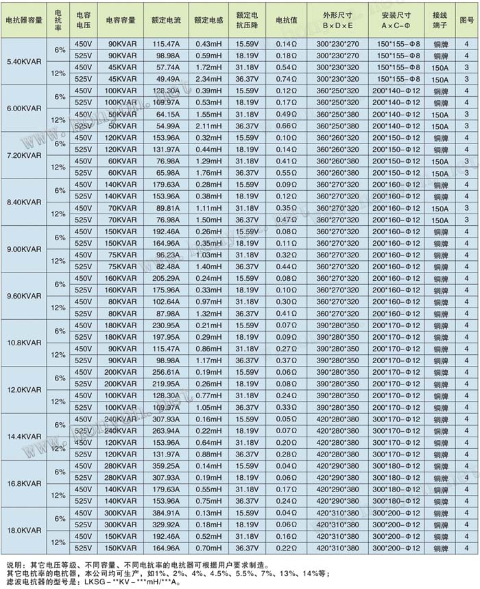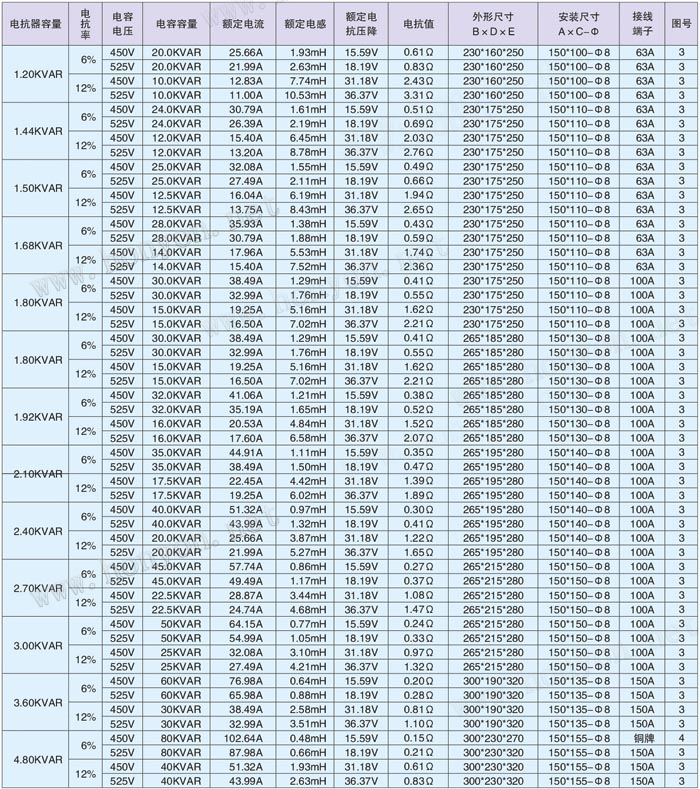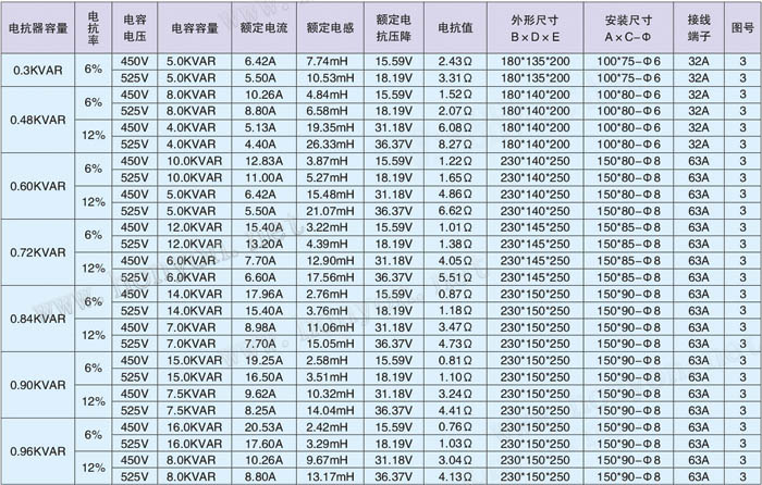 2.电抗率的种类:1%、4.5%、5%、6%、7%、12%、13%....