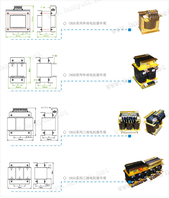 1.该电抗器分为三相和单相两种,均为铁心干式。